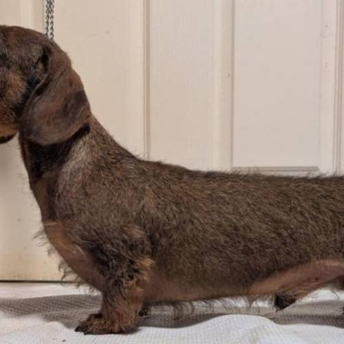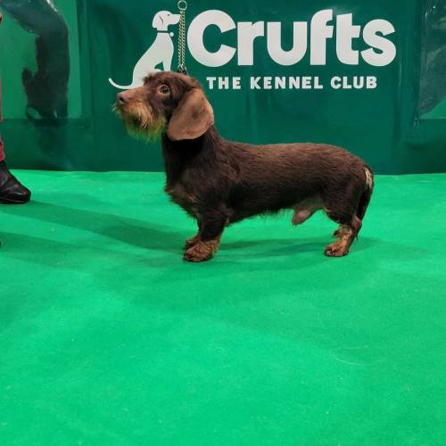 Dajean Chocolate Charmer, Crufts 1st prizewinner, Chocolate and tan 4.5kg, Siring black/tan chocolate/tan pups.
