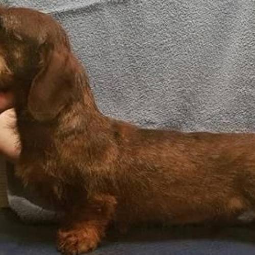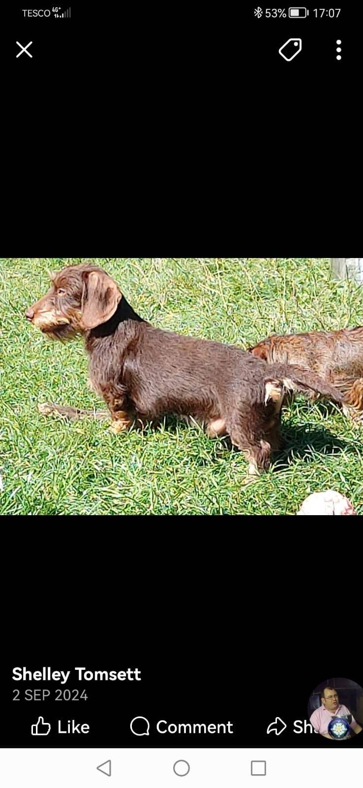 Dajean Chocolate Charmer, Crufts 1st prizewinner, Chocolate and tan 4.5kg, Siring black/tan chocolate/tan pups.